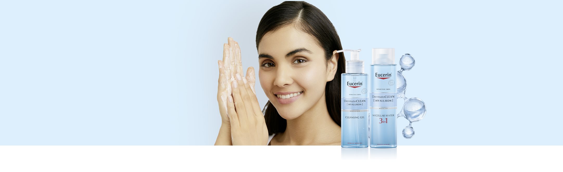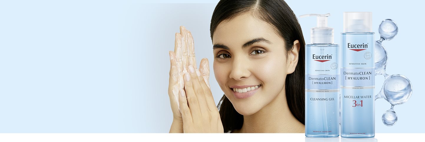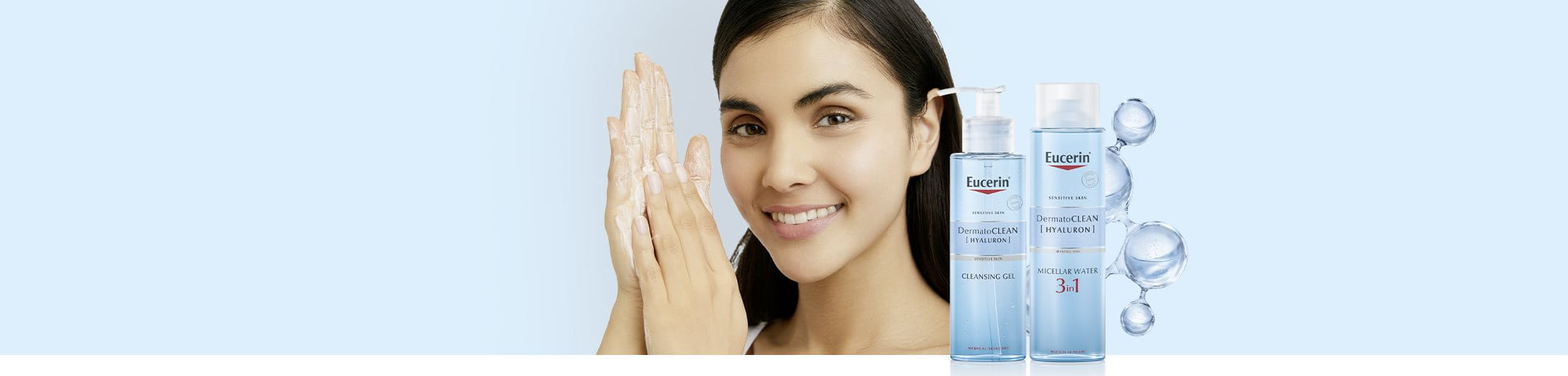 Eucerin DermatoCLEAN [HYALURON] este o gamă completă de produse de curățare potrivite pentru toate tipurile de piele și preferințele personale: un gel de curățare și o apă micelară.