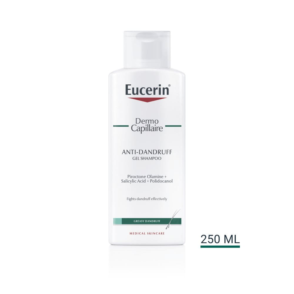 Șamponul gel DermoCapillaire anti-mătreață pentru păr gras de la Eucerin a fost conceput special pentru mătreața grasă și dermatita seboreică. Formula eficientă cu complexul triplu de Pirocton Olamină și Acid Salicilic combate microorganismele până la următoarea spălare și previne reapariția mătreții prin utilizare regulată. În plus, Polidocanolul calmează scalpul și ameliorează senzația de mâncărime. Îți curăță ușor scalpul, înlătură scuamele grase, reduce și controlează eficient mătreața și excesul de sebum, când este folosit în mod regulat. Formula sa blândă îți calmează scalpul și reduce mâncărimea, pentru un aspect curat și sănătos al părului și scalpului. Eficacitate și toleranță foarte ridicate pe scalpul gras, chiar și în caz de eczemă seboreică, dovedite clinic și dermatologic.