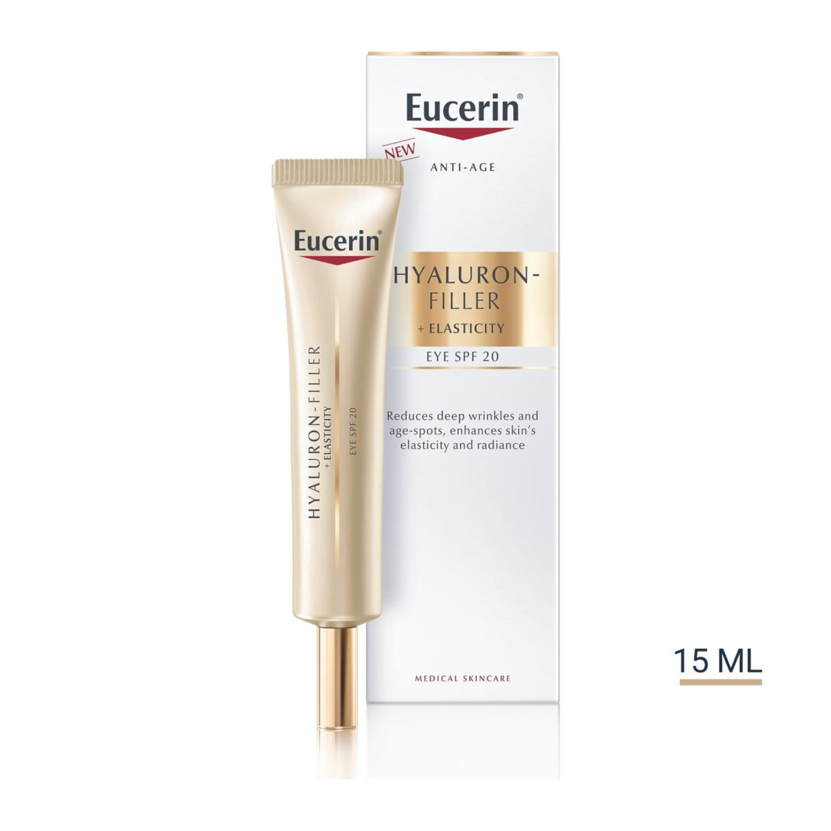 Datorită Factorului de Protecție Solară 20 și filtrului UVA, Crema de ochi Eucerin Hyaluron-Filler + Elasticity SPF 20 oferă protecție zilnică eficientă împotriva fotoîmbătrânirii.