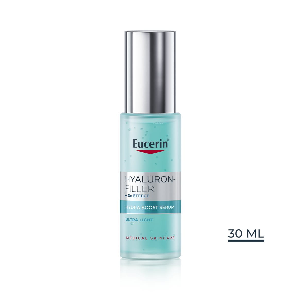 Hidratarea pielii este esențială pentru menținerea unui ten neted, cu aspect tânăr. Un serum bine echilibrat trebuie să ofere o hidratare profundă, să ajute la umplerea primelor riduri și să revigoreze pielea fără să lase o senzație greoaie. Serumul hidratant Eucerin Hyaluron-Filler 3x Effect Hydra este un booster puternic de hidratare, cu o textură ultra-ușoară, conceput să asigure hidratare timp de 24 de ore și un boost imediat de hidratare.