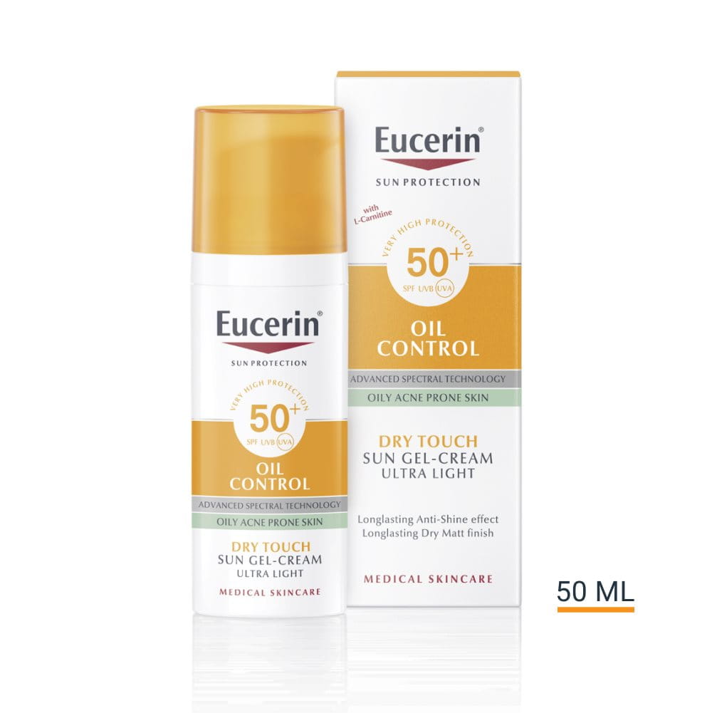 Crema gel de față Eucerin® Oil Control cu SPF50+ este dezvoltată pentru tenul gras și predispus la acnee. Tehnologie Spectrală Avansată combină filtrele UVA/UVB în bandă largă și fotostabile1 pentru o protecție UV ridicată cu Licocalcona A pentru a neutraliza radicalii liberi activați de razele UV și lumina vizibilă cu energie înaltă HEVIS. Crema gel cu factor de protecție solară include, de asemenea, Acid Gliciretinic, care susține mecanismele de reparare a ADN-ului pielii. Tehnologia de reglare a sebumului cu L-Carnitină și Microparticule Absorbante oferă o senzație imediată de piele uscată la atingere și un efect anti-strălucire de lungă durată timp de până la 8 ore. Crema gel de față Eucerin® Oil Control cu SPF50+ nu conține parfum și are o textură ultra-ușoară, non-grasă. Studiile clinice și dermatologice au arătat o toleranță foarte bună la pielea sensibilă și predispusă la acnee.