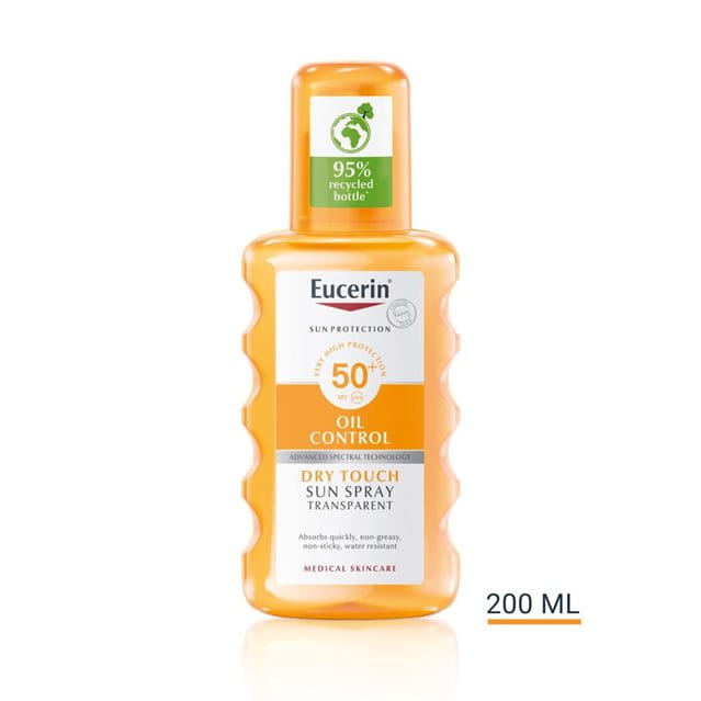 Lumina UV este principala cauză a daunelor pe piele provocate de soare, dar lumina vizibilă cu energie înaltă (HEVIS) poate induce, de asemenea, radicalii liberi care provoacă stres suplimentar pielii. Spray-ul transparent pentru corp Eucerin® Sun Oil Control SPF50+ este un spray cu factor de protecție solară pentru corp care calmează și protejează pielea sensibilă, inclusiv pielea predispusă la acnee. Tehnologie Spectrală Avansată combină filtrele UVA și UVB de bandă largă și fotostabile1 pentru o protecție UV ridicată cu Licocalcona A pentru a neutraliza radicalii liberi cauzați de lumina UV și HEVIS. Spray-ul are o formulă transparentă și non-grasă, se absoarbe rapid și este rezistent la apă. Acest produs are o toleranță bună pe pielea sensibilă și predispusă la acnee*. Este dovedit clinic și dermatologic.