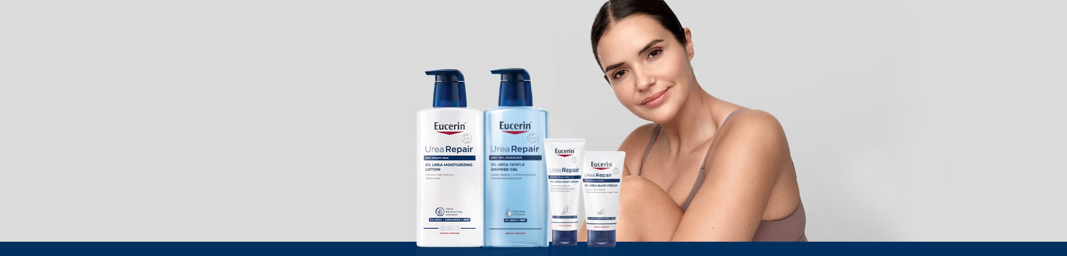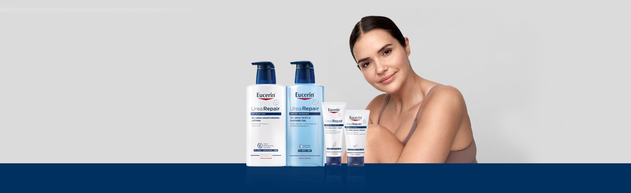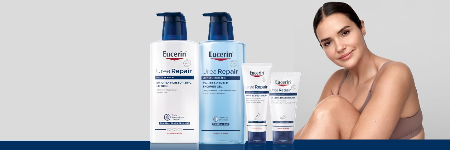 Gama Eucerin UreaRepair oferă o varietate de produse, inclusiv geluri de duș, loțiuni pentru corp (inclusiv pentru mâini și picioare) și o cremă de tratament intensiv pentru zonele cu piele extrem de uscată. Aceste produse sunt disponibile cu diferite concentrații de uree activă, iar concentrația utilizată ar trebui să varieze în funcție de severitatea uscăciunii pielii.
