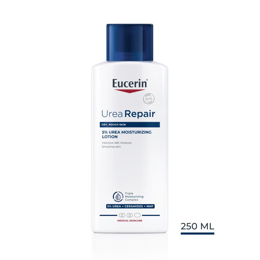 Atunci când bariera pielii este sănătoasă, aceasta ne protejează de iritanții externi și ajută pielea să își mențină un nivel optim de hidratare. Dar atunci când această barieră este afectată, pielea se poate deshidrata și poate deveni uscată, atât la vedere, cât și la atingere. Loțiunea Eucerin® UreaRepair intens hidratantă cu 5% Uree oferă pielii uscate și aspre, îngrijirea zilnică de care are nevoie. Formula conține un complex unic triplu hidratant – cu 5% Uree, Ceramide și alți Factori Naturali de Hidratare, pentru ameliorarea imediată a semnelor de piele foarte uscată: piele aspră, cu roșeață, predispusă la descuamare, mâncărimi și cu senzație de tensiune: